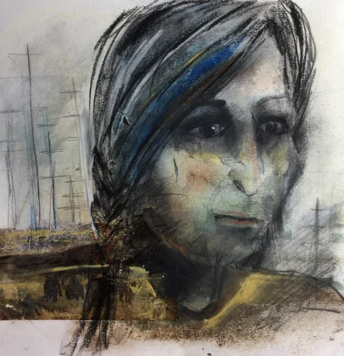 Mixed Media on Panel (acrylic, charcoal, steel, photo)