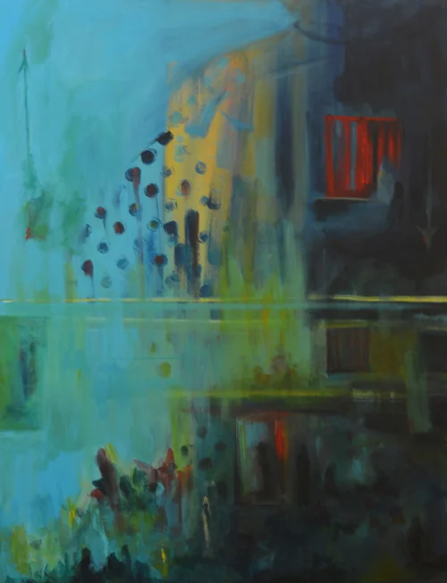 Mixed Media on Panel (acrylic, photo, charcoal, carved wooden oar, nails)